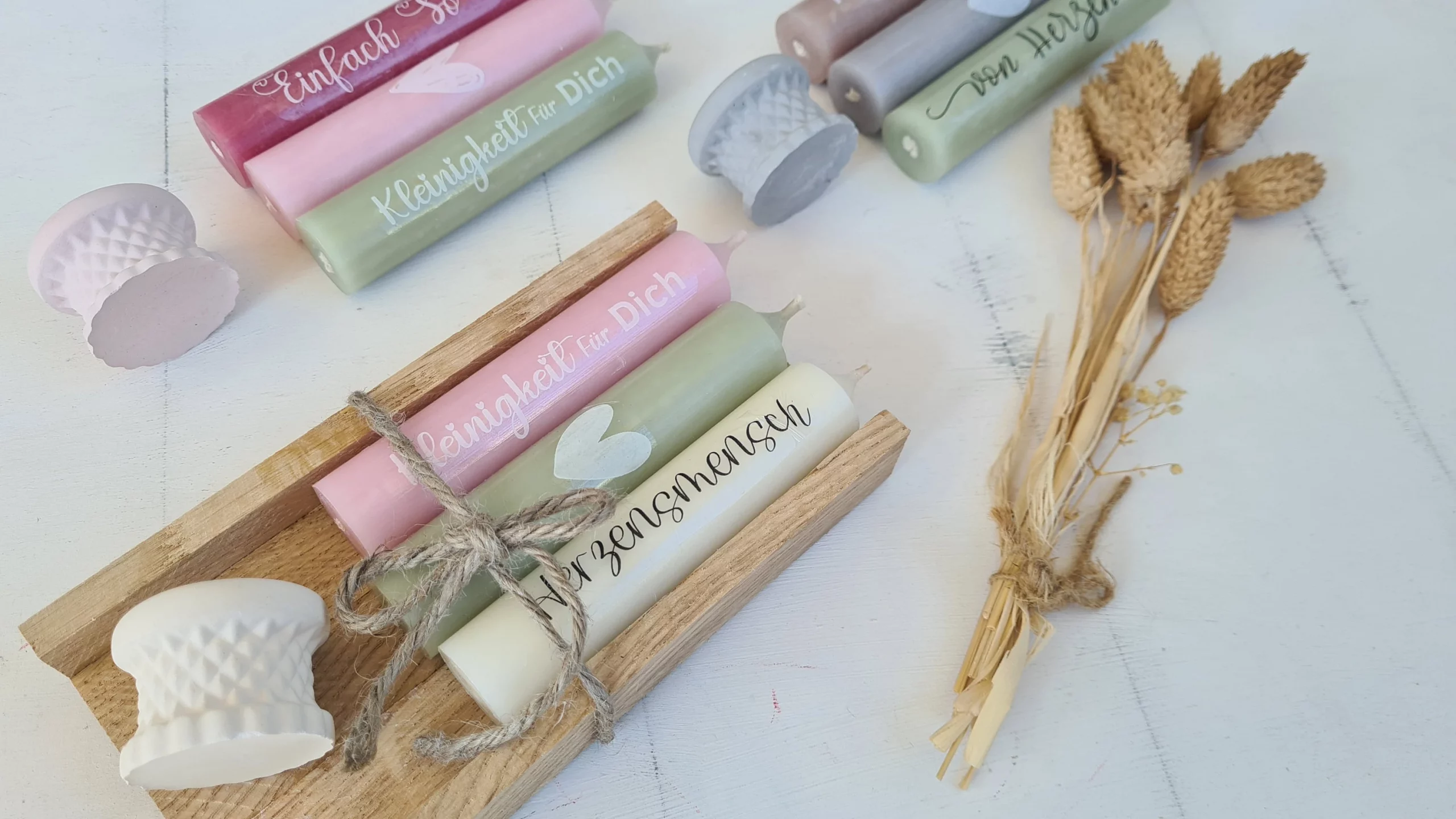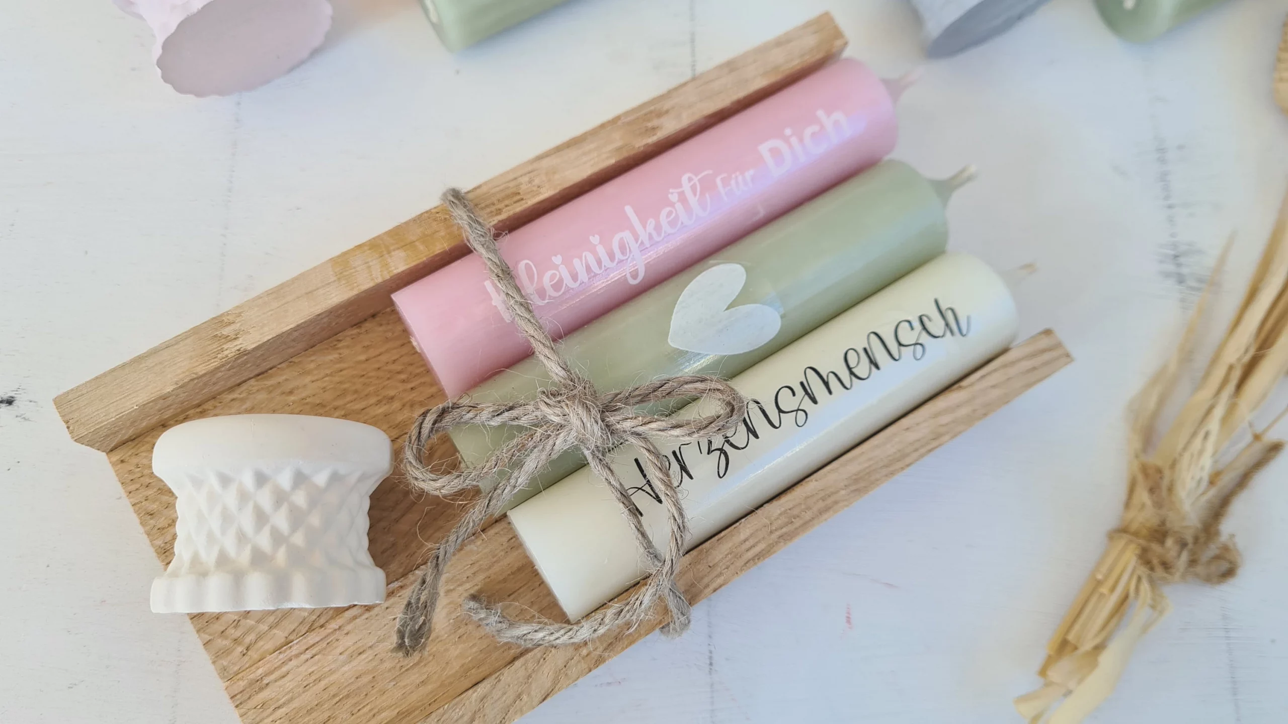 Zusätzlich dazu beinhaltet das Set noch 3 Stabkerzen. Das alles schön verpackt in einer Holbox.