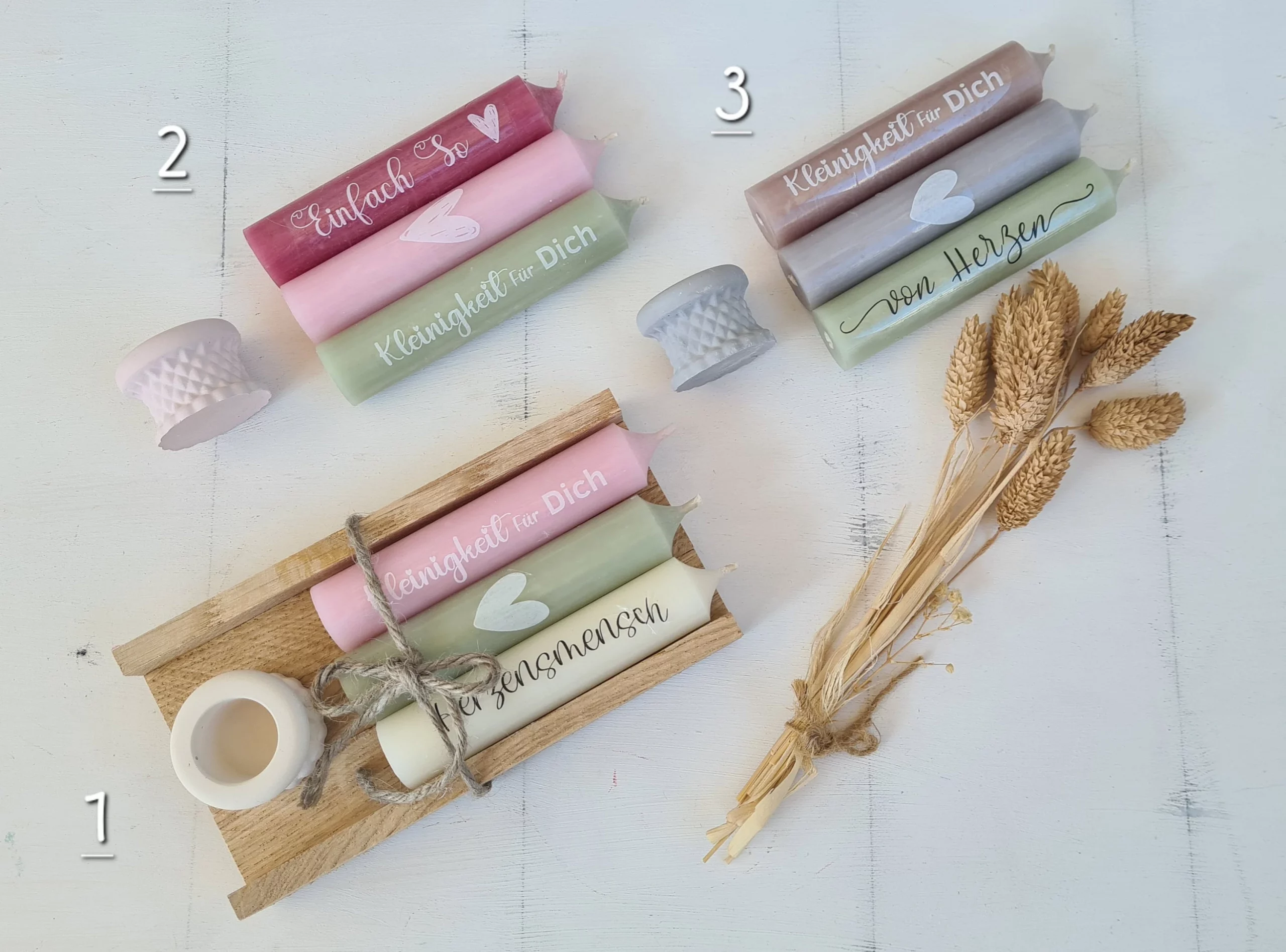 Geschenkset: Kerzenhalter inkl. Kerze in praktischer Holzbox 3er SetGeschenkset: Kerzenhalter inkl. Kerze in praktischer Holzbox 3er Set