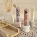 Die Kerzenhalter sind aus Raysin gegossen und erhältlich in den Farben weiß, grau und altrosa.