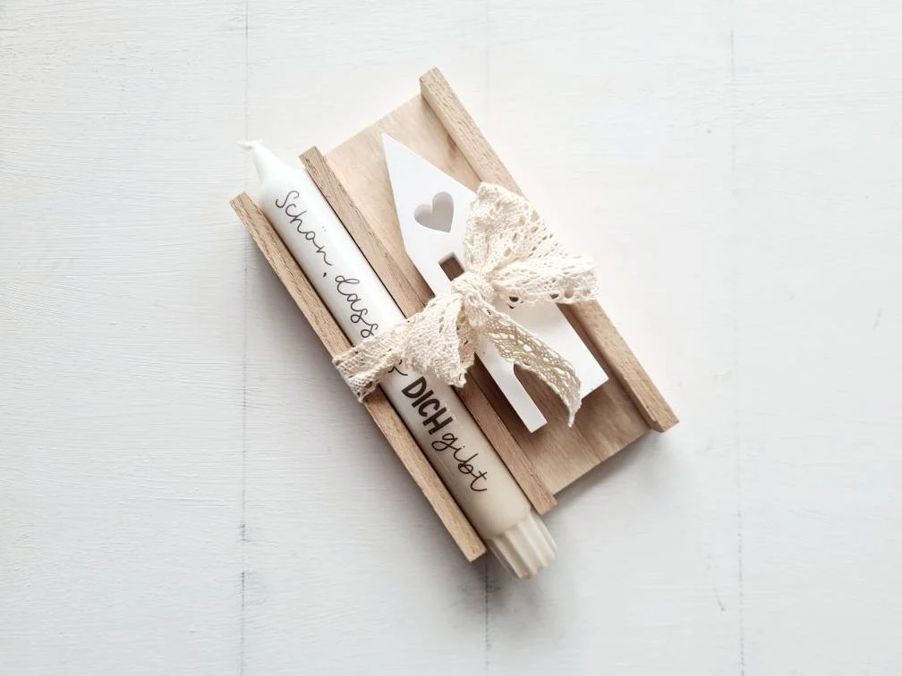 Schreibe die erste Rezension für „Geschenkset: Stabkerze mit Dekohäuschen“