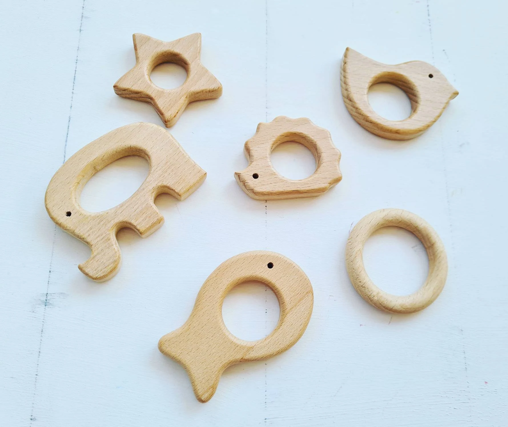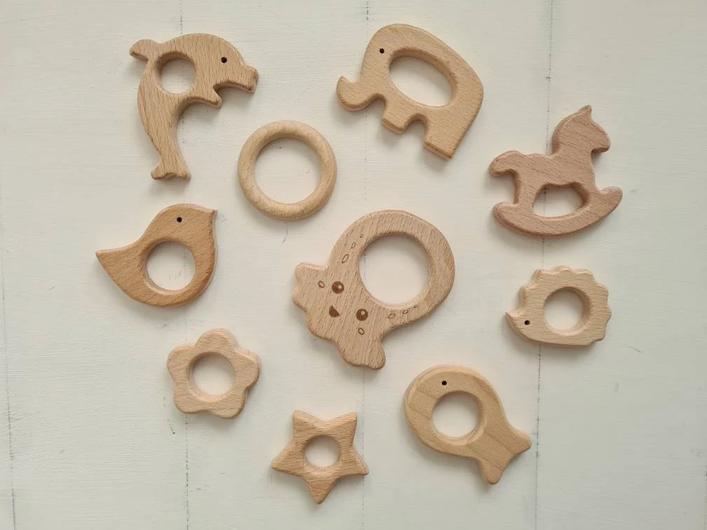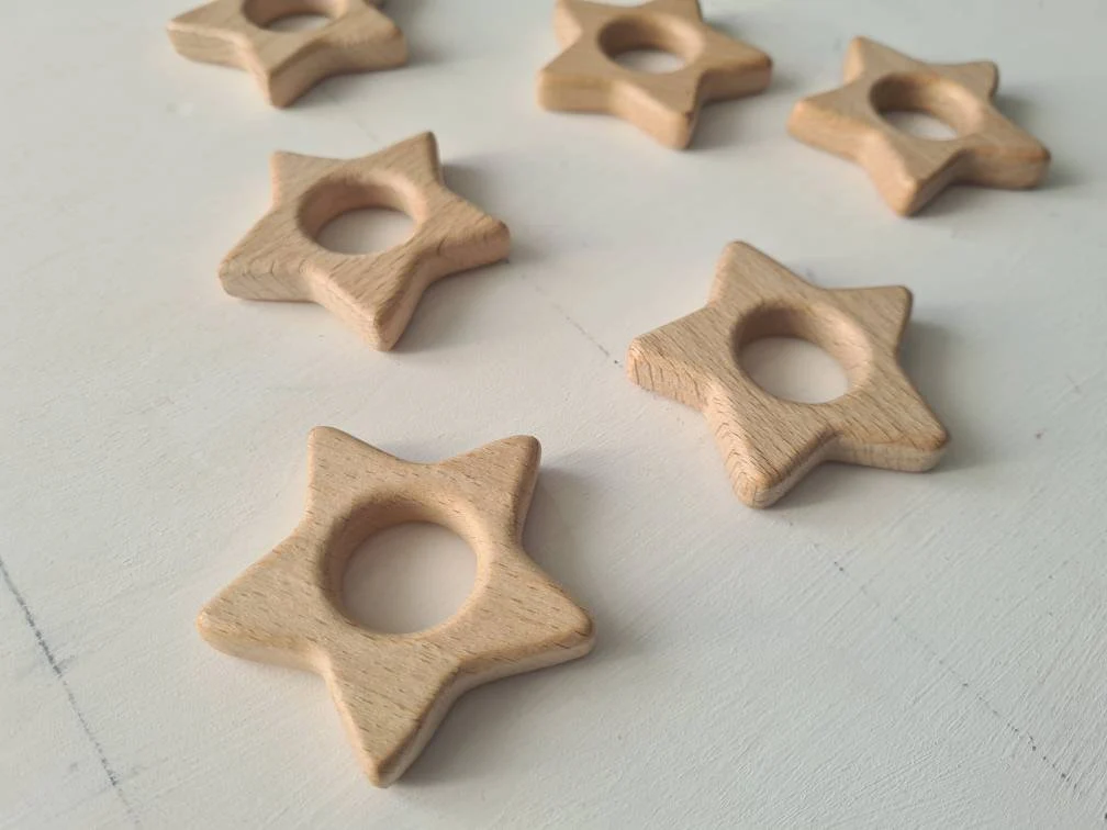 Die Holzgreiflinge eignen sich nicht nur gut zum Greifen üben, sondern sind auch ideal zum beißen wenn die kleinen Babys anfangen zu Zahnen.