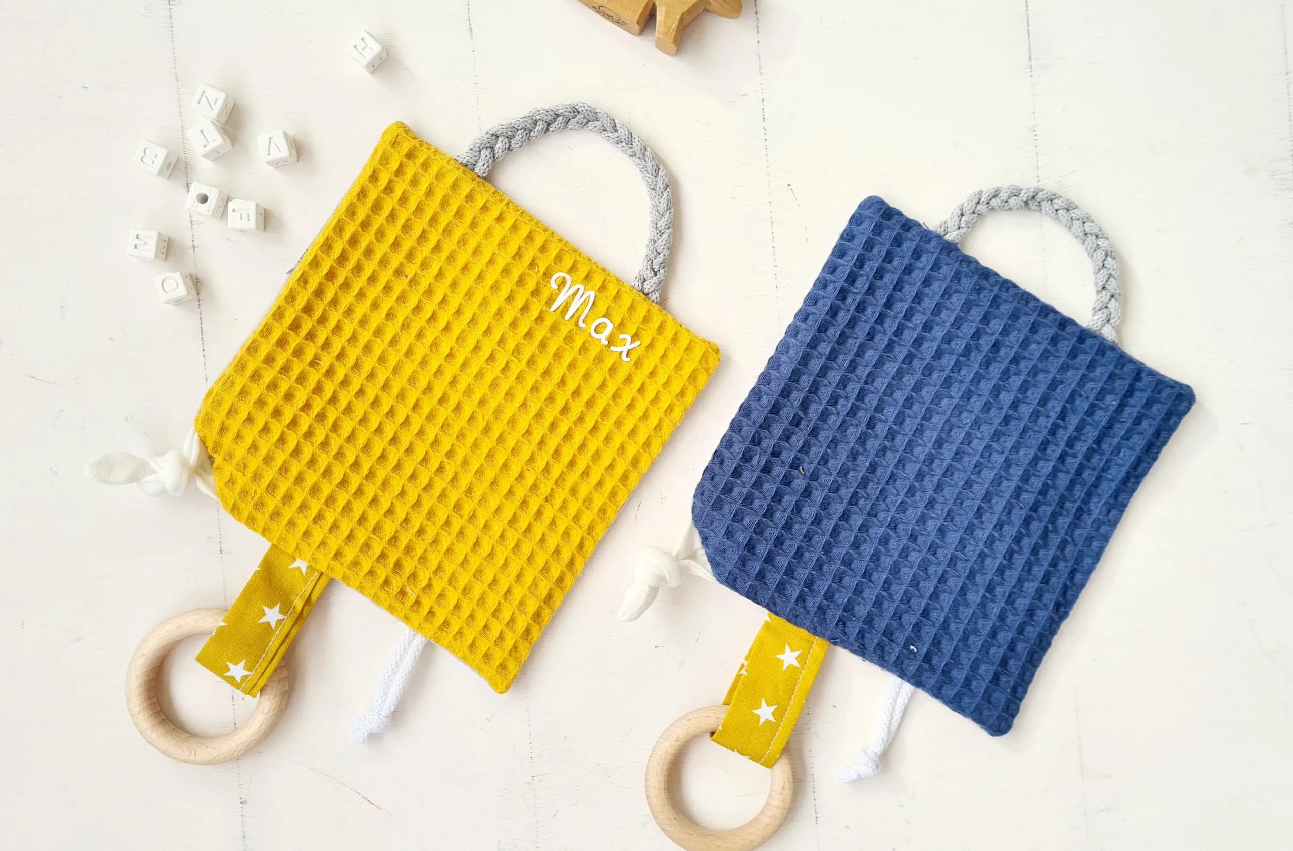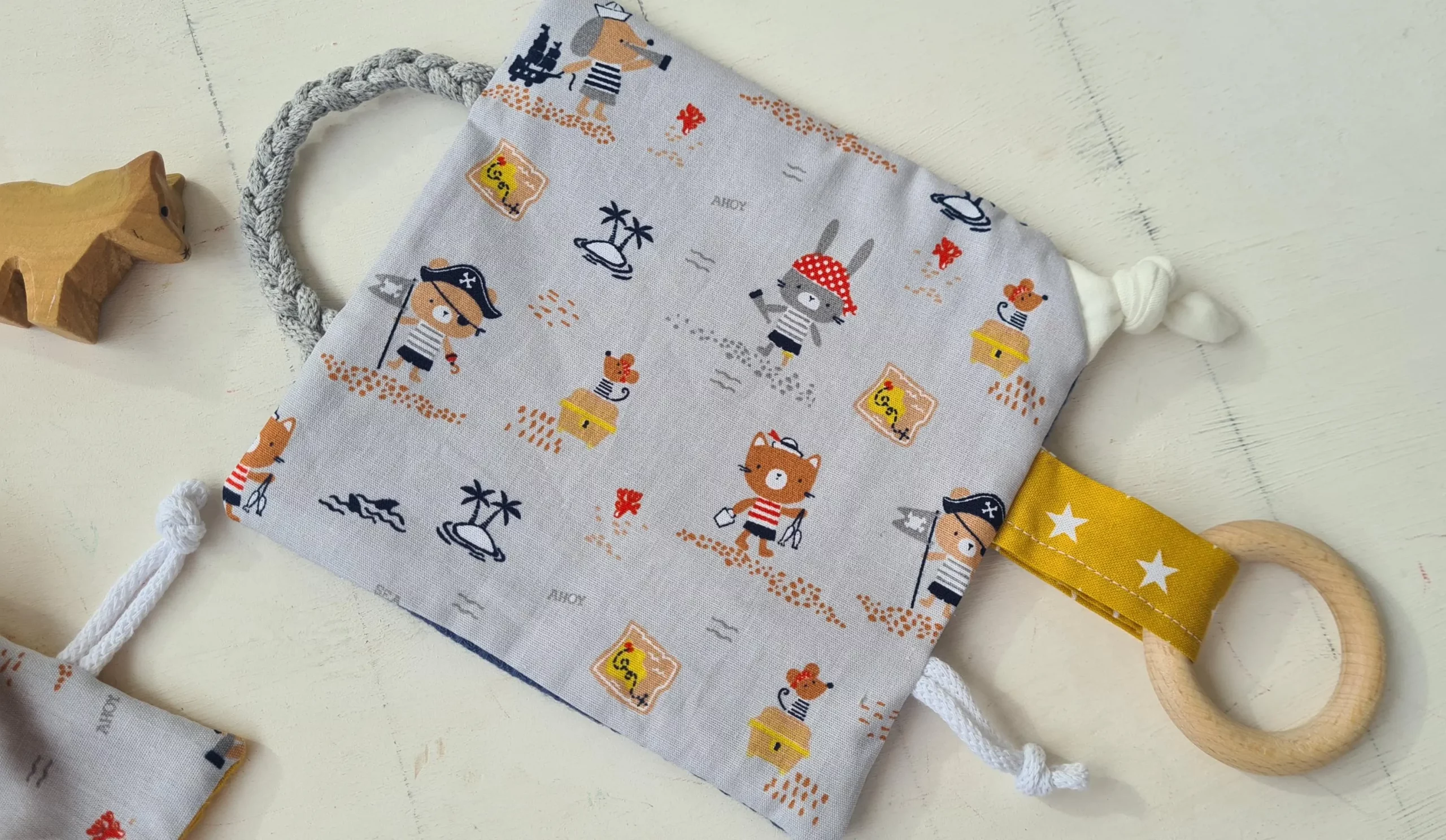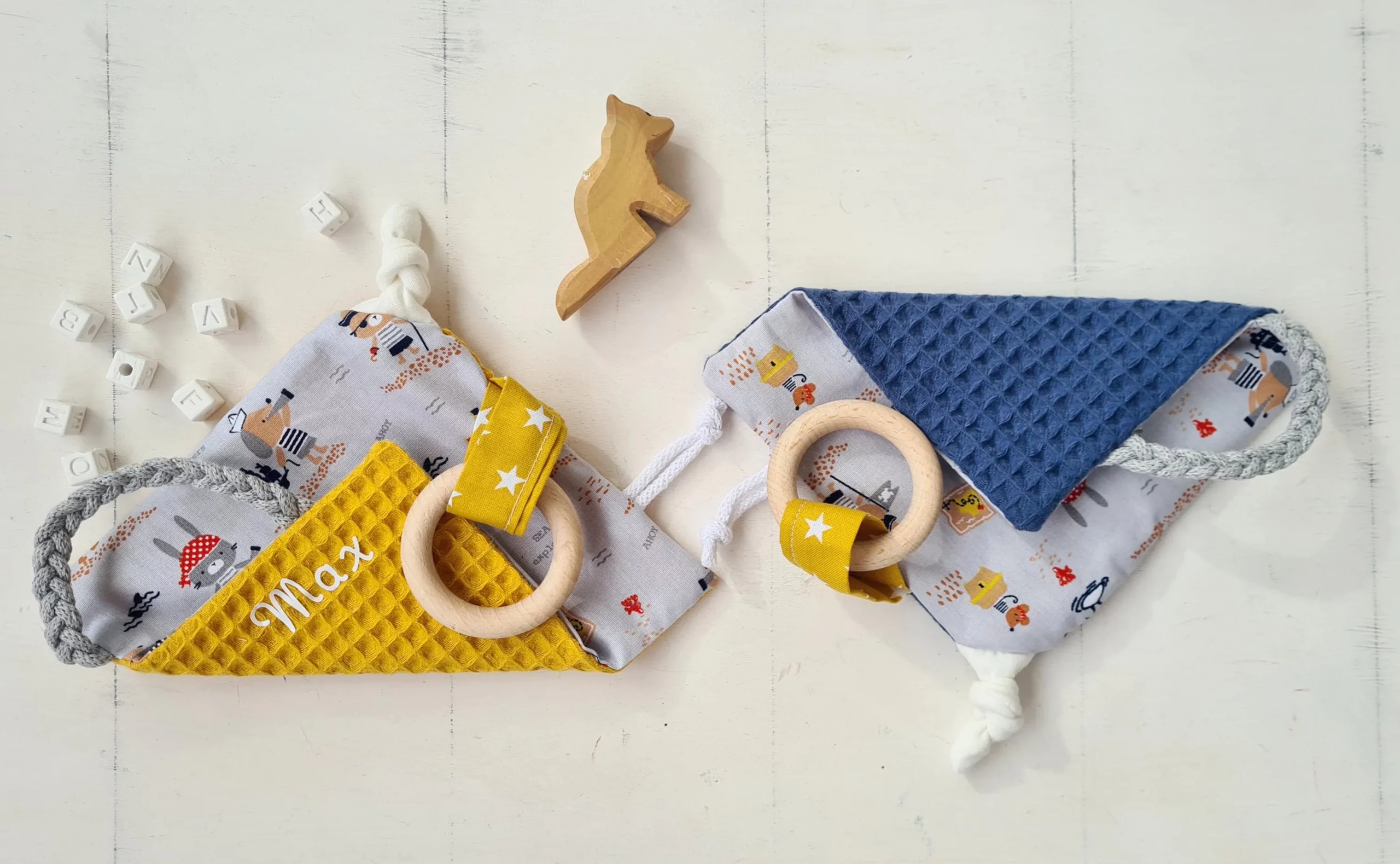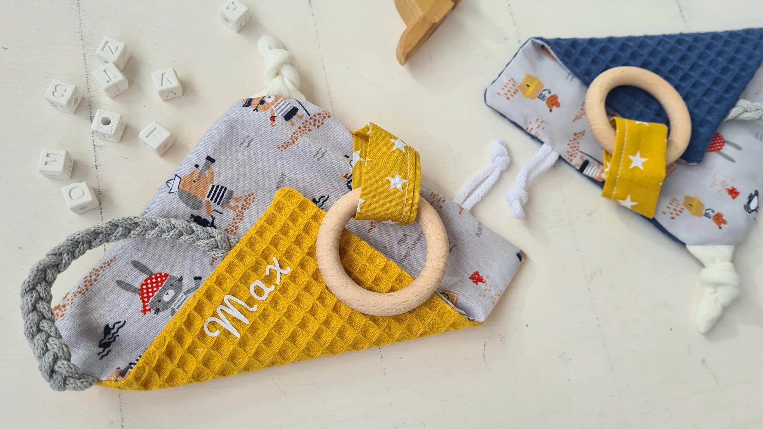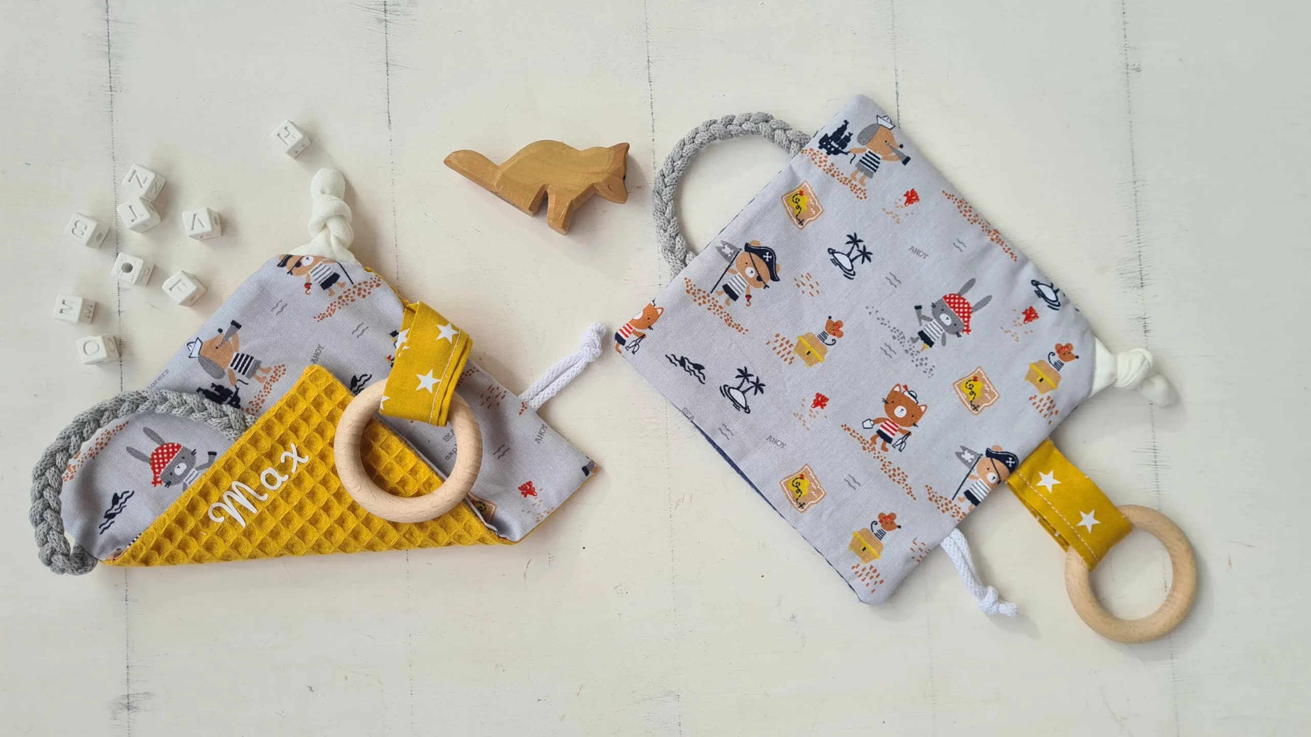 Knistertuch mit Name und Greifling RäuberbandeKnistertuch mit Name und Greifling Räuberbande
