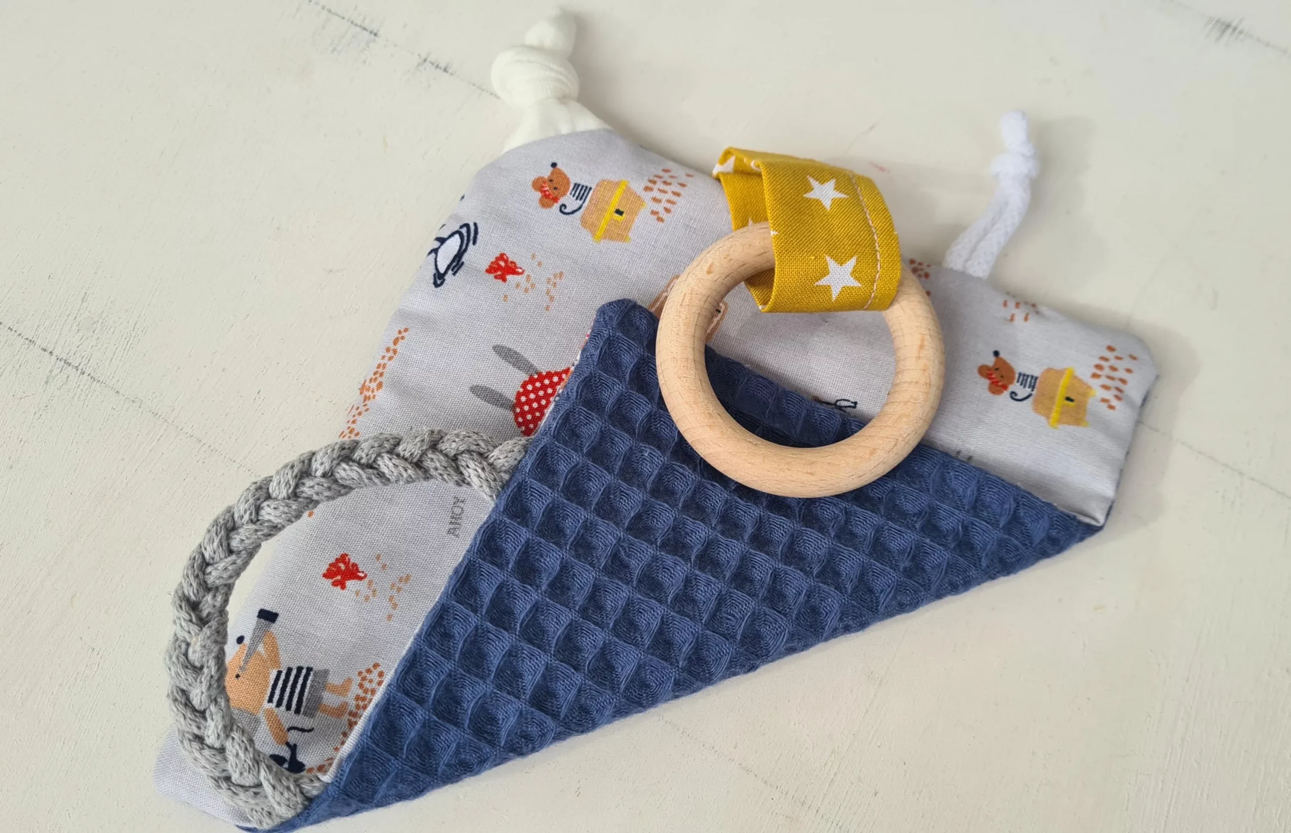 Hinweis: Das Spielen mit Knistertüchern sollte immer unter Aufsicht geschehen! Die Bändchen sind zwar doppelt eingenäht, jedoch übernehme keinerlei Haftung, sollte sich doch mal ein Bändchen lösen.