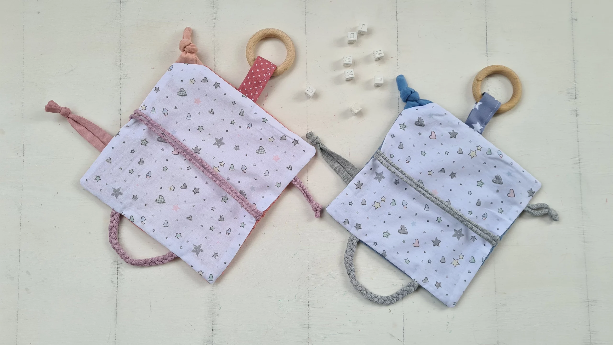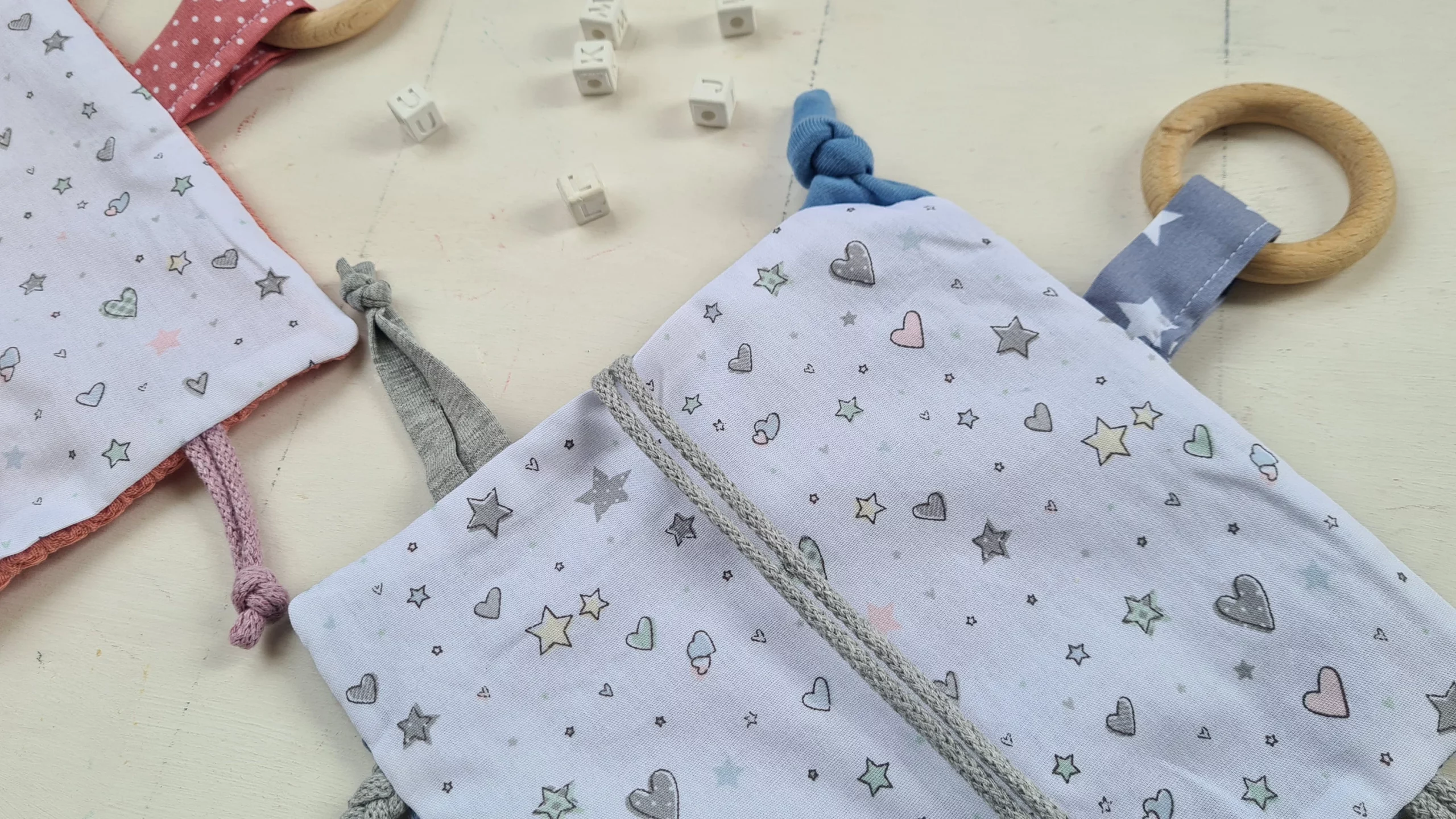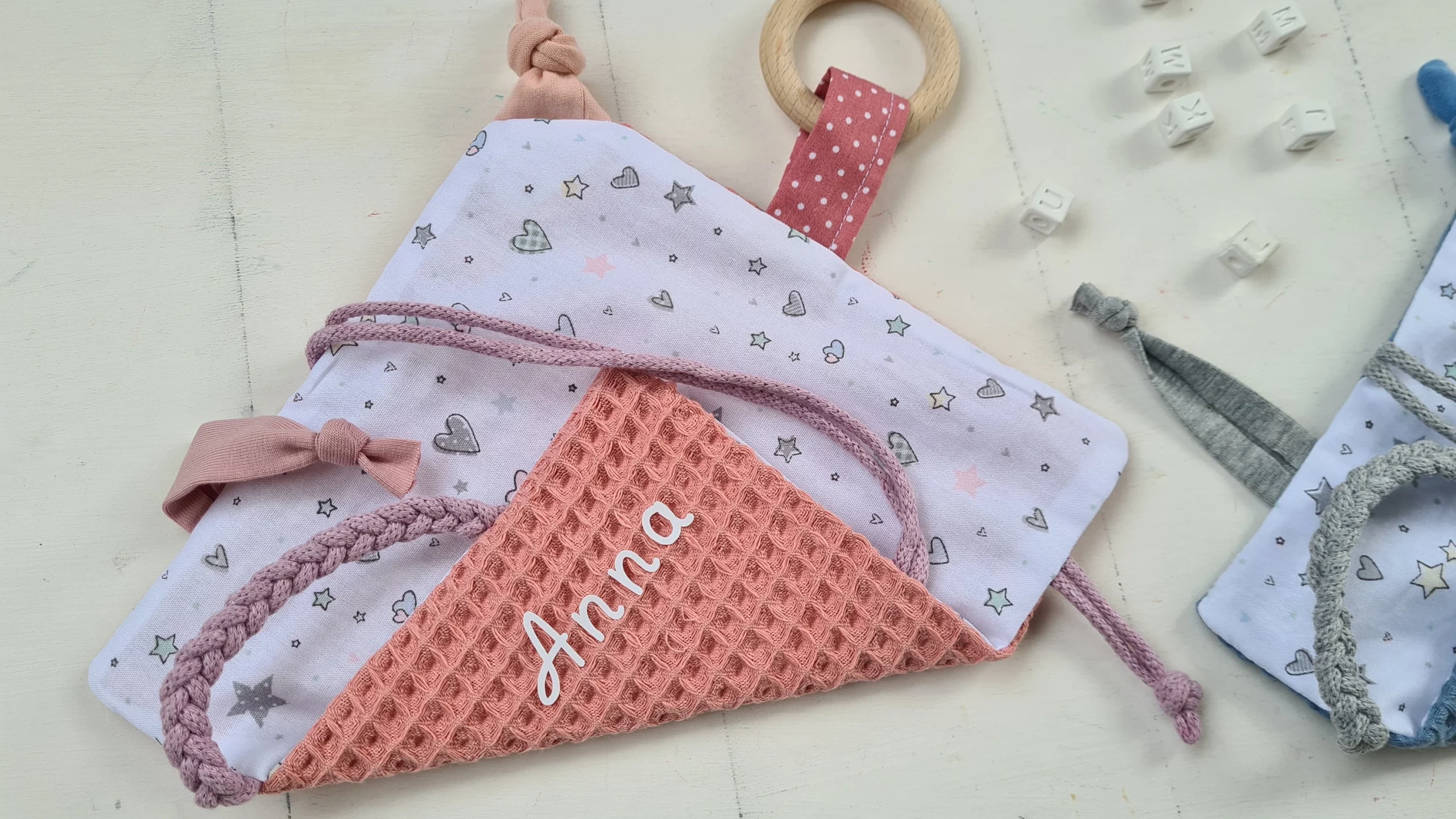 XXL Knistertuch mit Name und Greifling Stars & HeartsXXL Knistertuch mit Name und Greifling Stars & Hearts