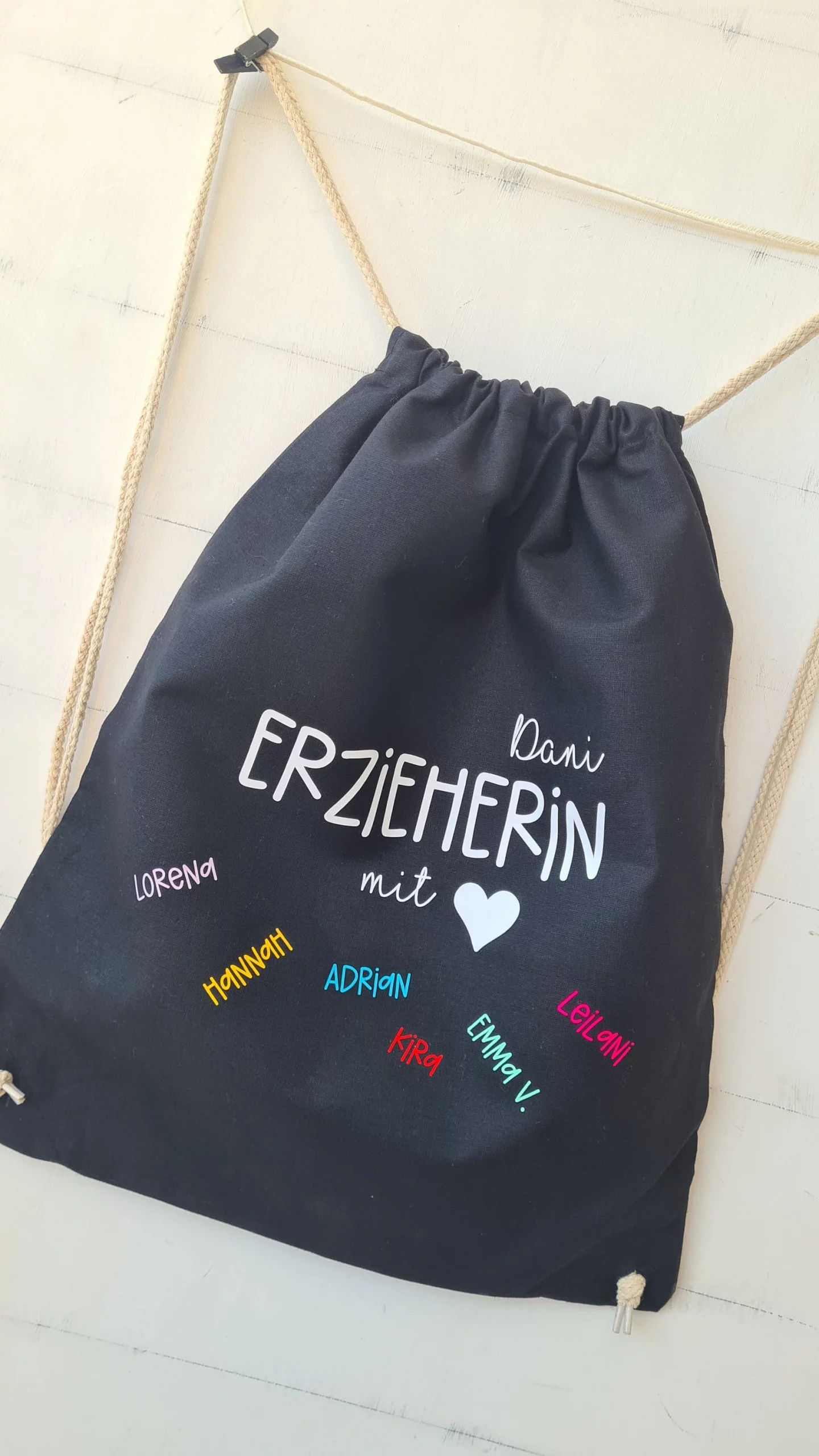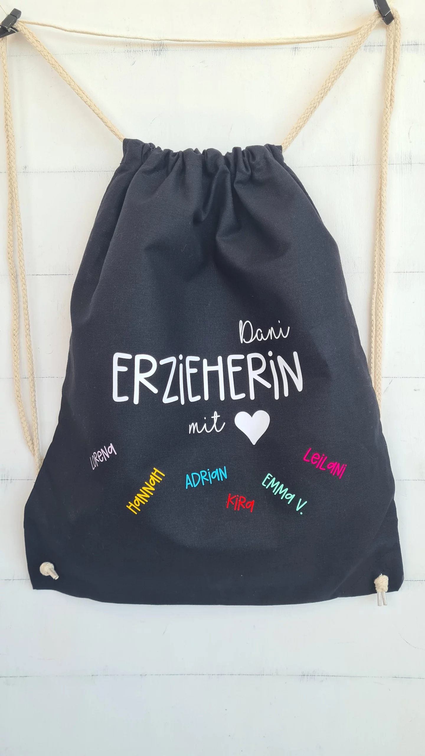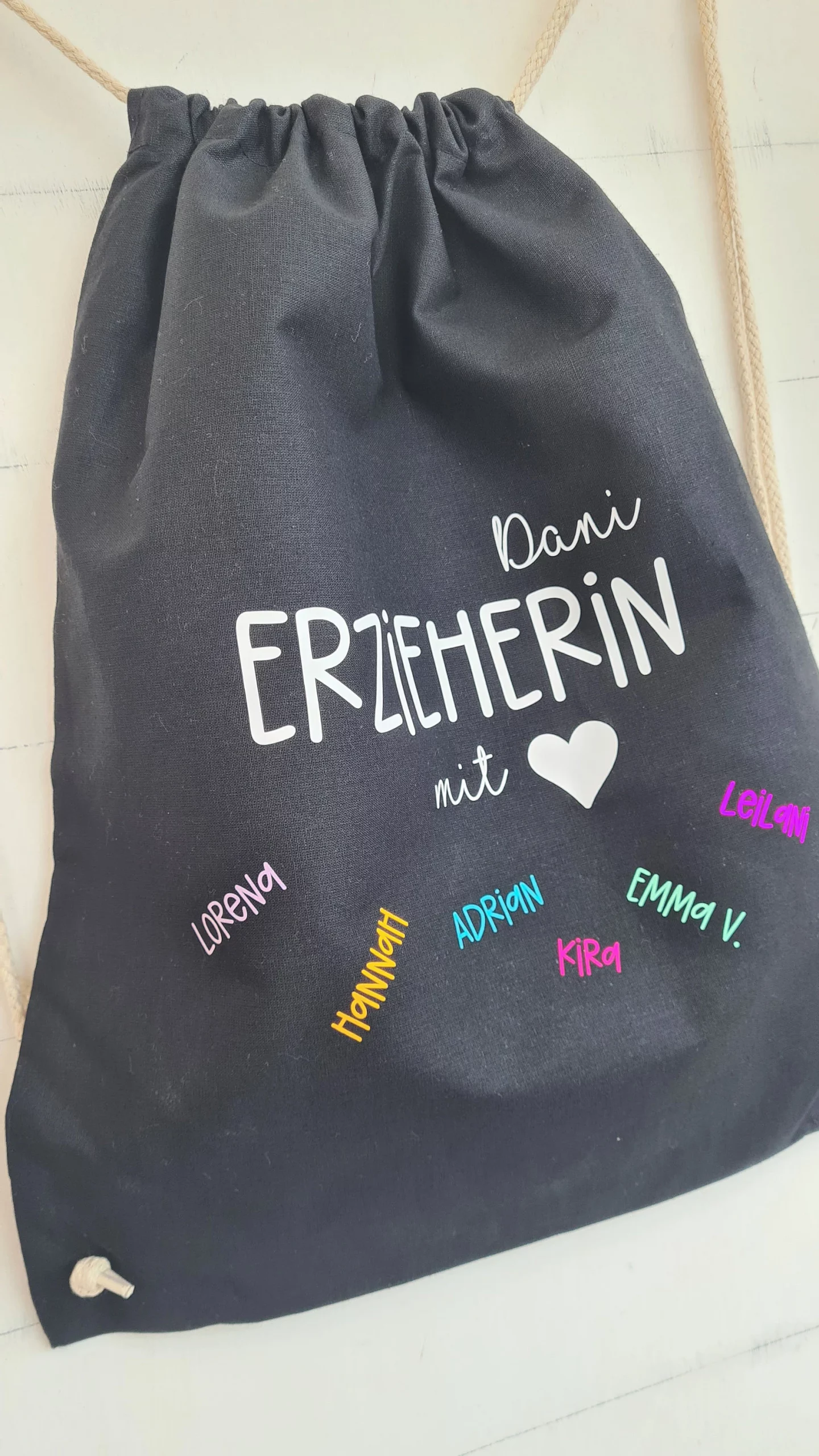 Personalisierter Turnbeutel "Erzieherin mit Herz"Personalisierter Turnbeutel „Erzieherin mit Herz“