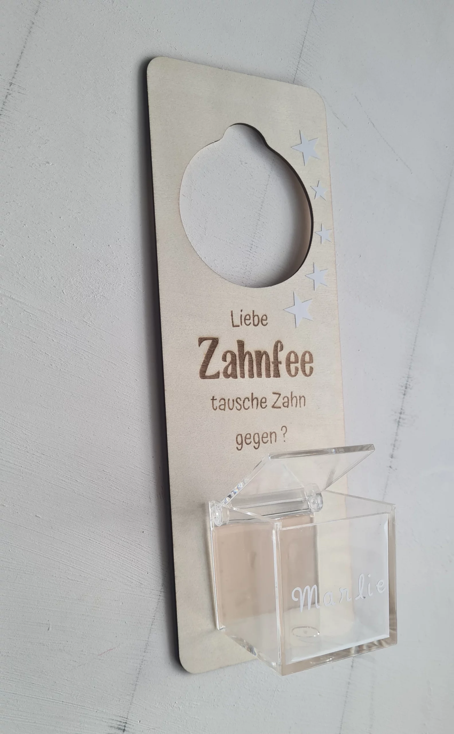 Schreibe die erste Rezension für „Personalisiertes Türschild für Milchzahnaufbewahrung Zahnfee Zahnfeeschild“