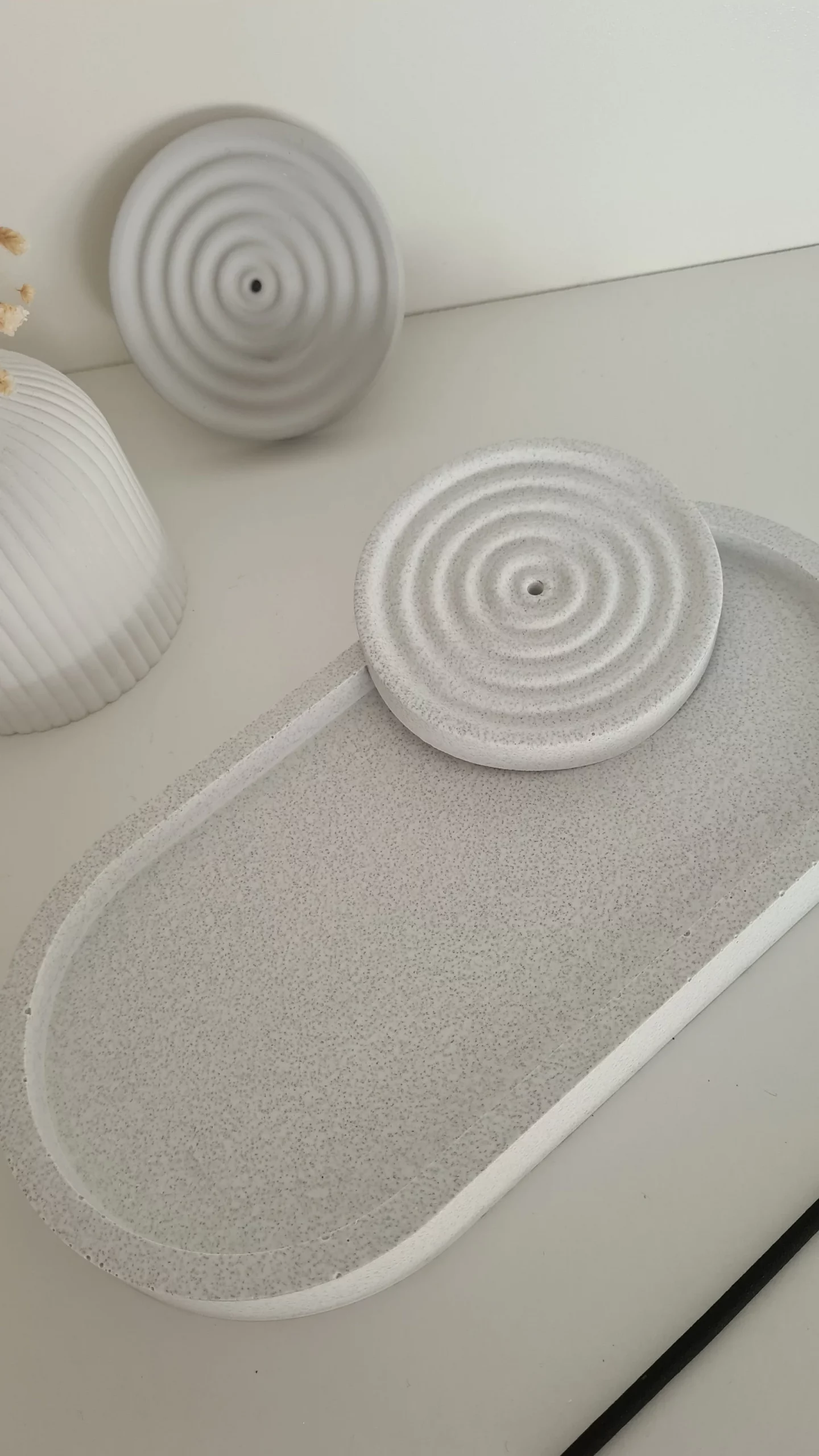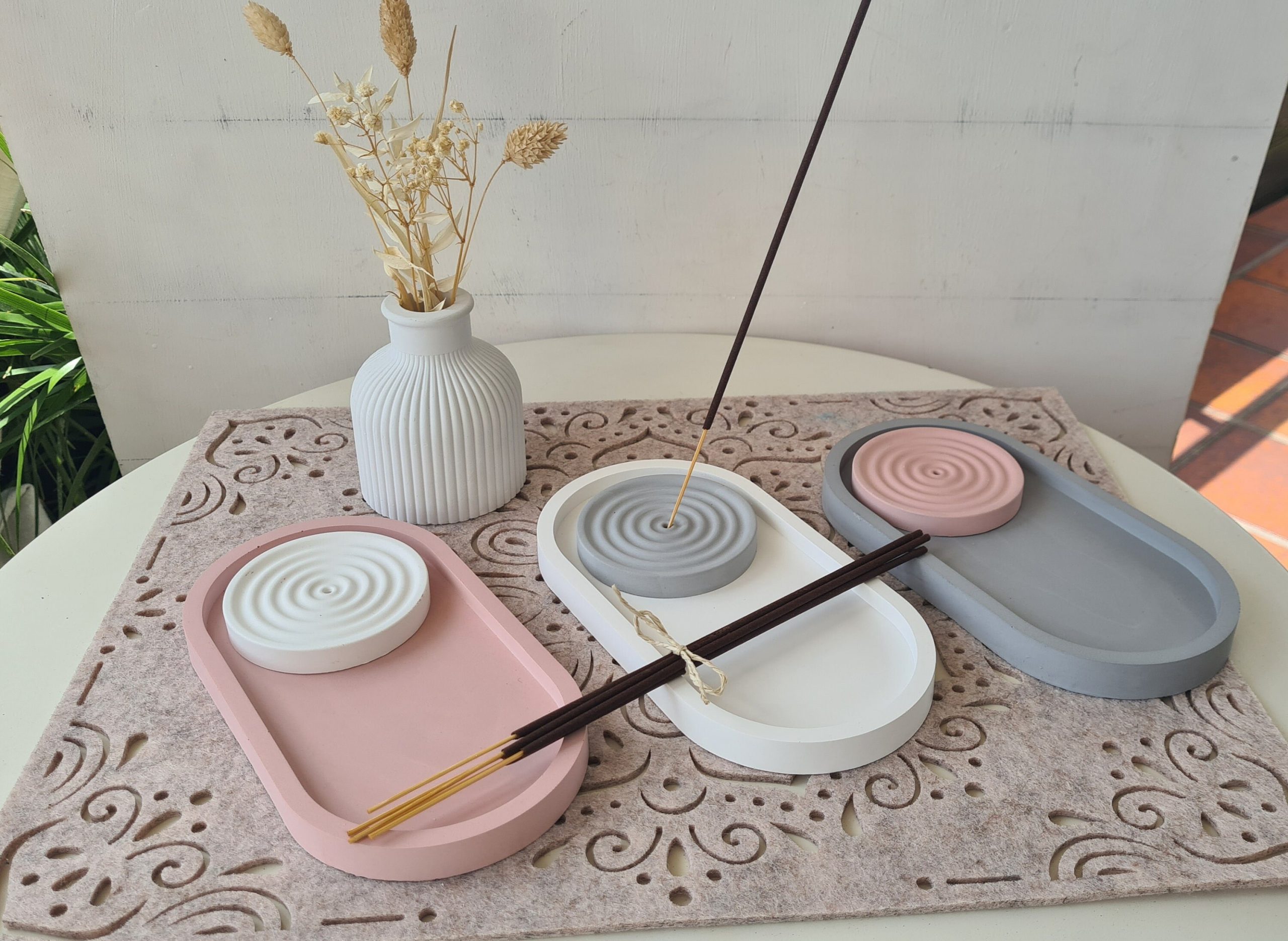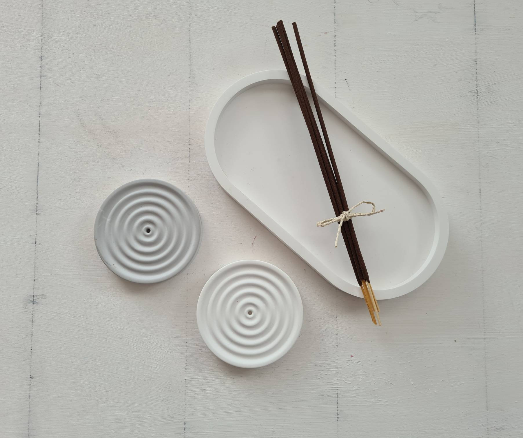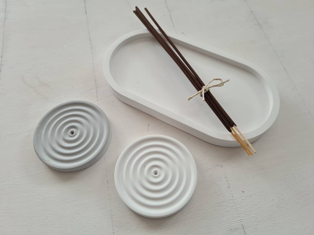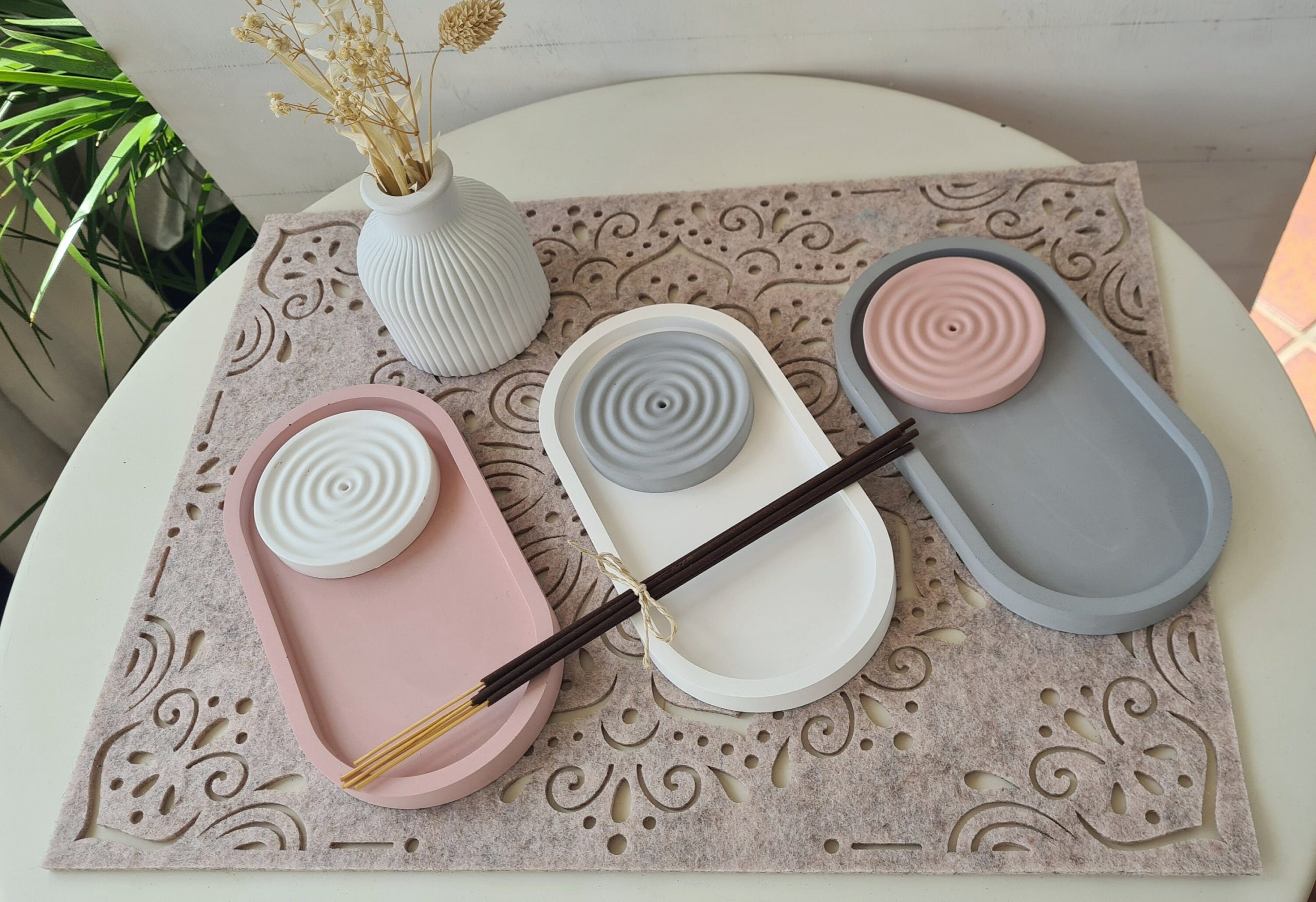 Die Räucherstäbchenhalter sind aus Raysin gegossen und in der Farbe weiß, altrosa oder grau erhältlich. Falls du die Farbkombi ändern möchtest, dann schreib mich gerne an.