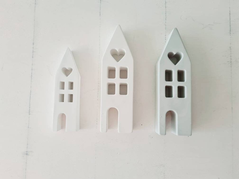 Die Häuschen gibt es in 2 Größen und in den Farben weiß, grau und Altrosa.