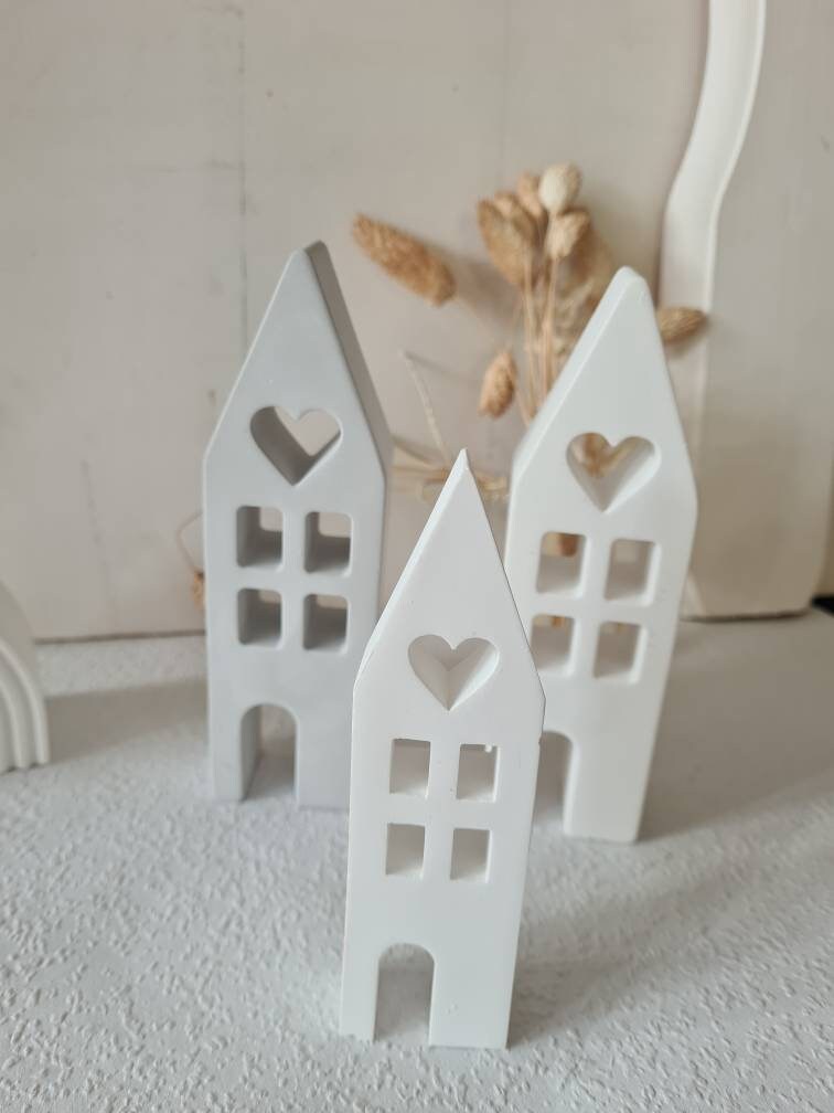 Ob einzeln aufgestellt oder gemeinsam mit einem meiner Tabletts aufgestellt. Diese Häuschen machen sich an jedem Platz gut.